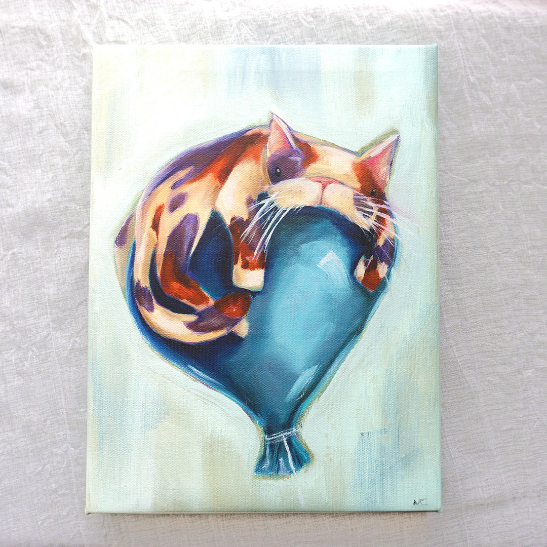 Is that the ever elusive “Wendy Bird”? Nope! It’s just Wendy, the sweet local calico who find balloons to snooze on.